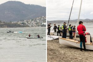 Sailors were thrown into the choppy conditions, prompting an emergency response