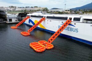 Three slides were deployed from the world's largest battery-electric ferry