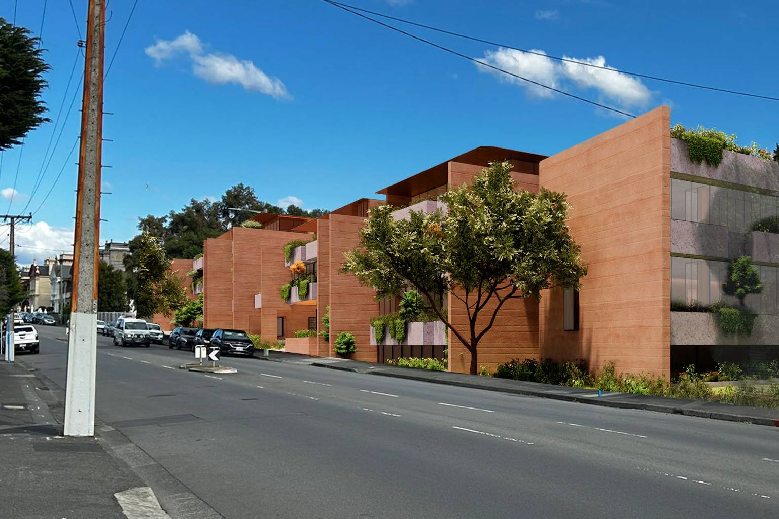 The design includes stepped height changes to help reduce the building’s visual impact on the streetscape.