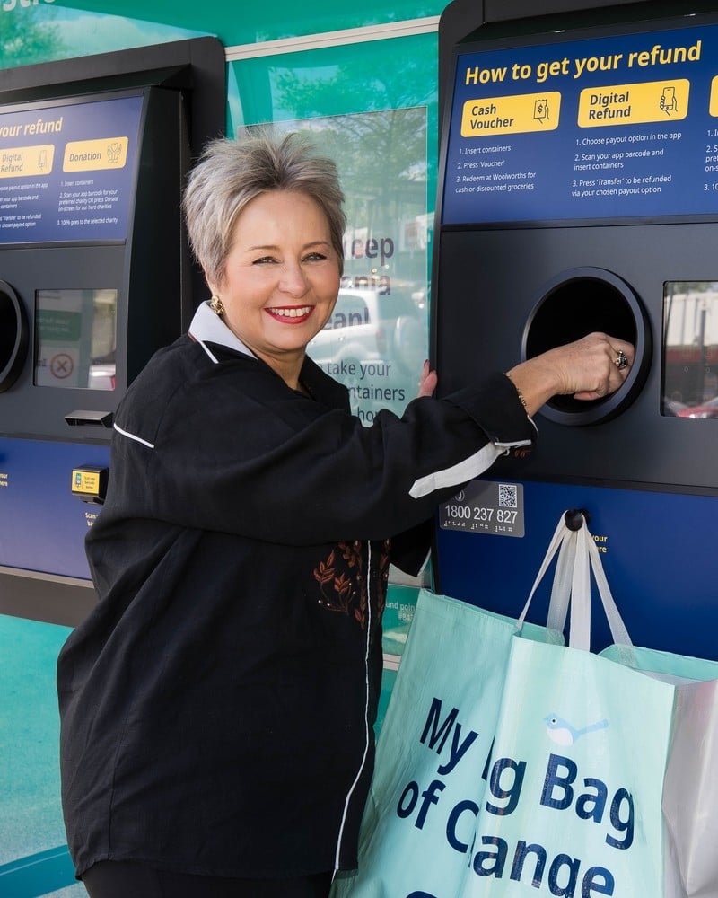 The reverse vending machine at Glenorchy Central is the 45th refund point under Tasmania’s Recycle Rewards scheme, which launched in May.