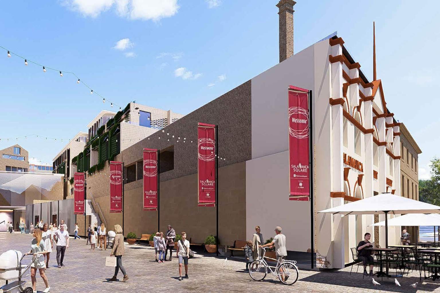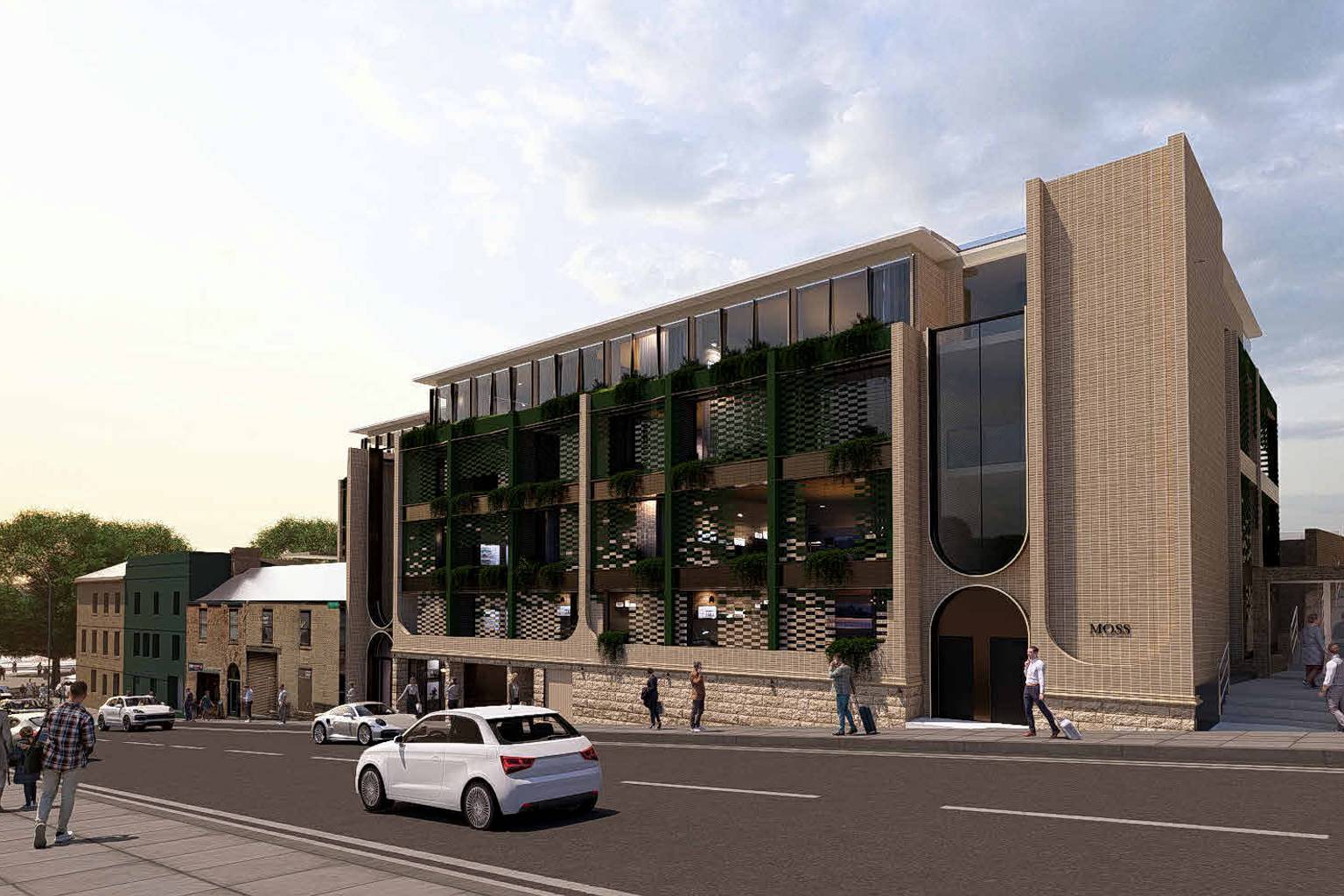 The design, featuring stone cladding and decorative tiling, draws inspiration from the area’s Georgian sandstone warehouses while remaining “clearly contemporary”.