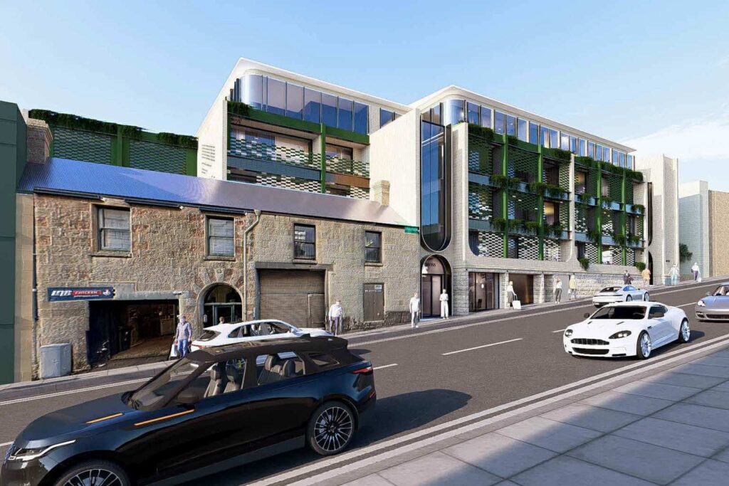 Heritage-listed buildings at 4 Montpelier Retreat and 41 Salamanca Place would be retained and incorporated into the redevelopment.