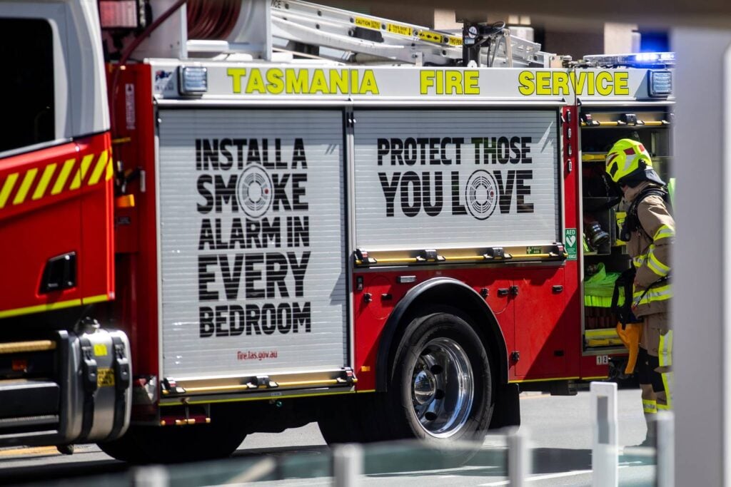 The Tasmania Fire Service said crews “located a fire that had started on the decking of the unit”.