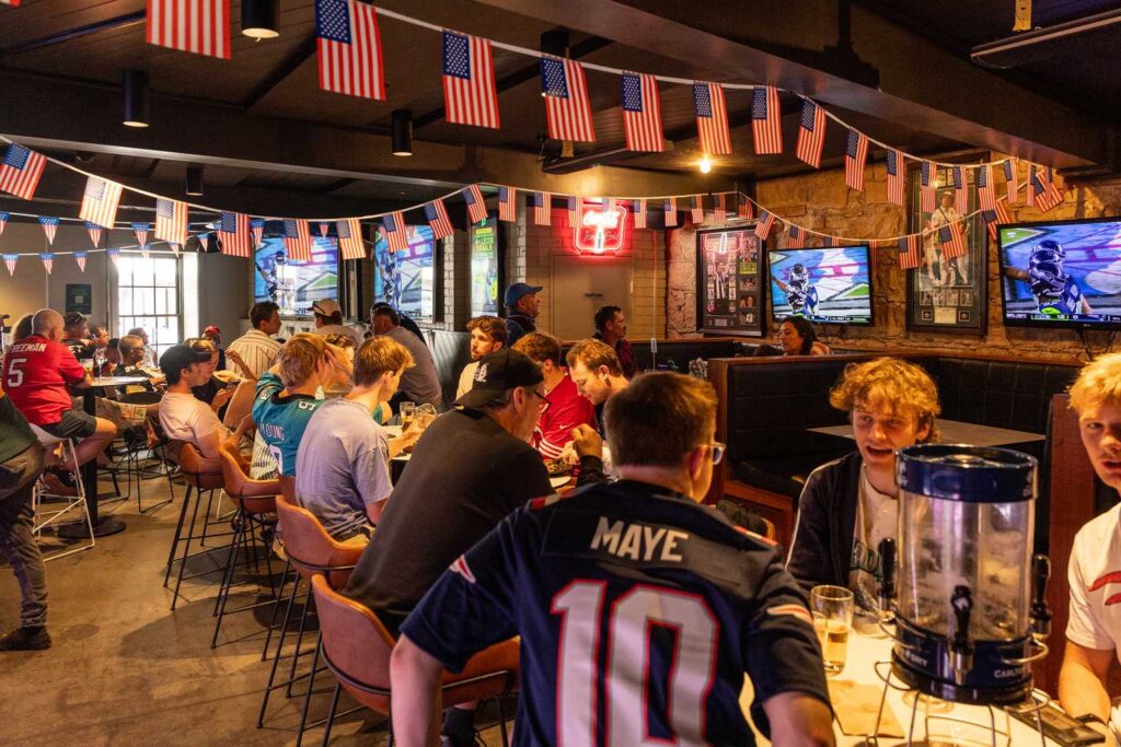 The Pavilion sports bar in Salamanca was decked out in American flags and packed with fans from 9:30am, many arriving straight after knocking on the doors before opening.