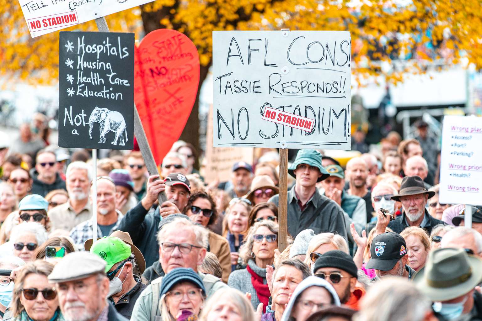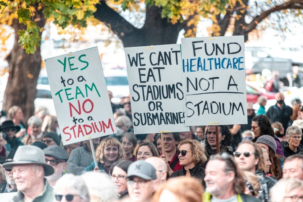 The 11am rally, organised by the No New Stadium group headed by Roland Browne, will feature prominent speakers including Greens MLC for Hobart Cassy O’Connor, human rights lawyer Greg Barns and Independent MLC for Nelson Meg Webb.