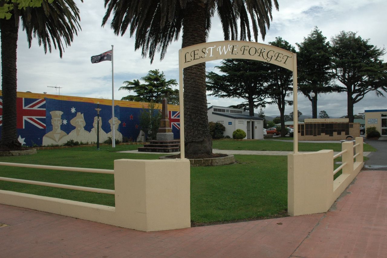 The cenotaph, dedicated in 1923 to honour local soldiers killed in World War I, stands in St Helens Memorial Park.