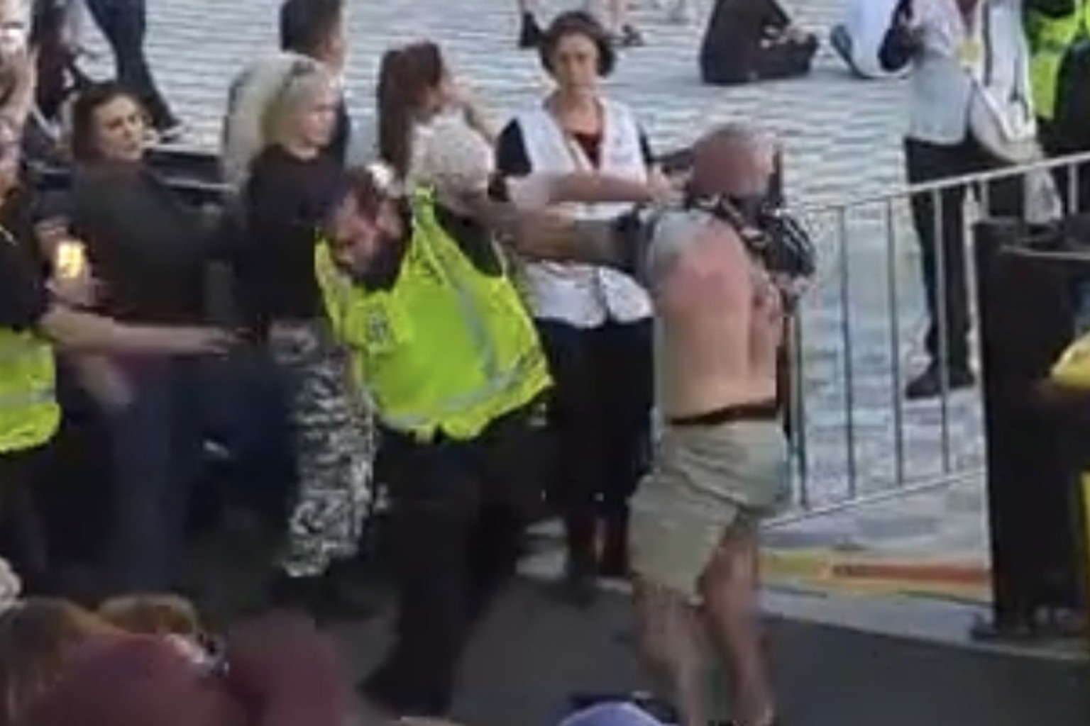 Two arrests were made for assault, with one incident involving what witnesses described as a “brutal punch-on” between a male concertgoer and a security guard.