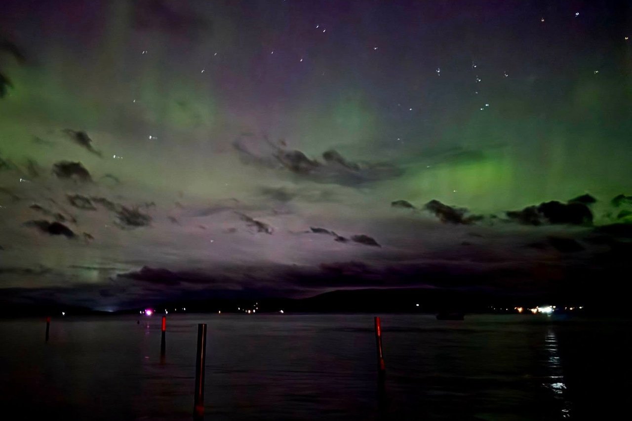 Photographers managed to capture vivid green and purple colours illuminating the night sky, even with partial cloud coverage obscuring some areas.