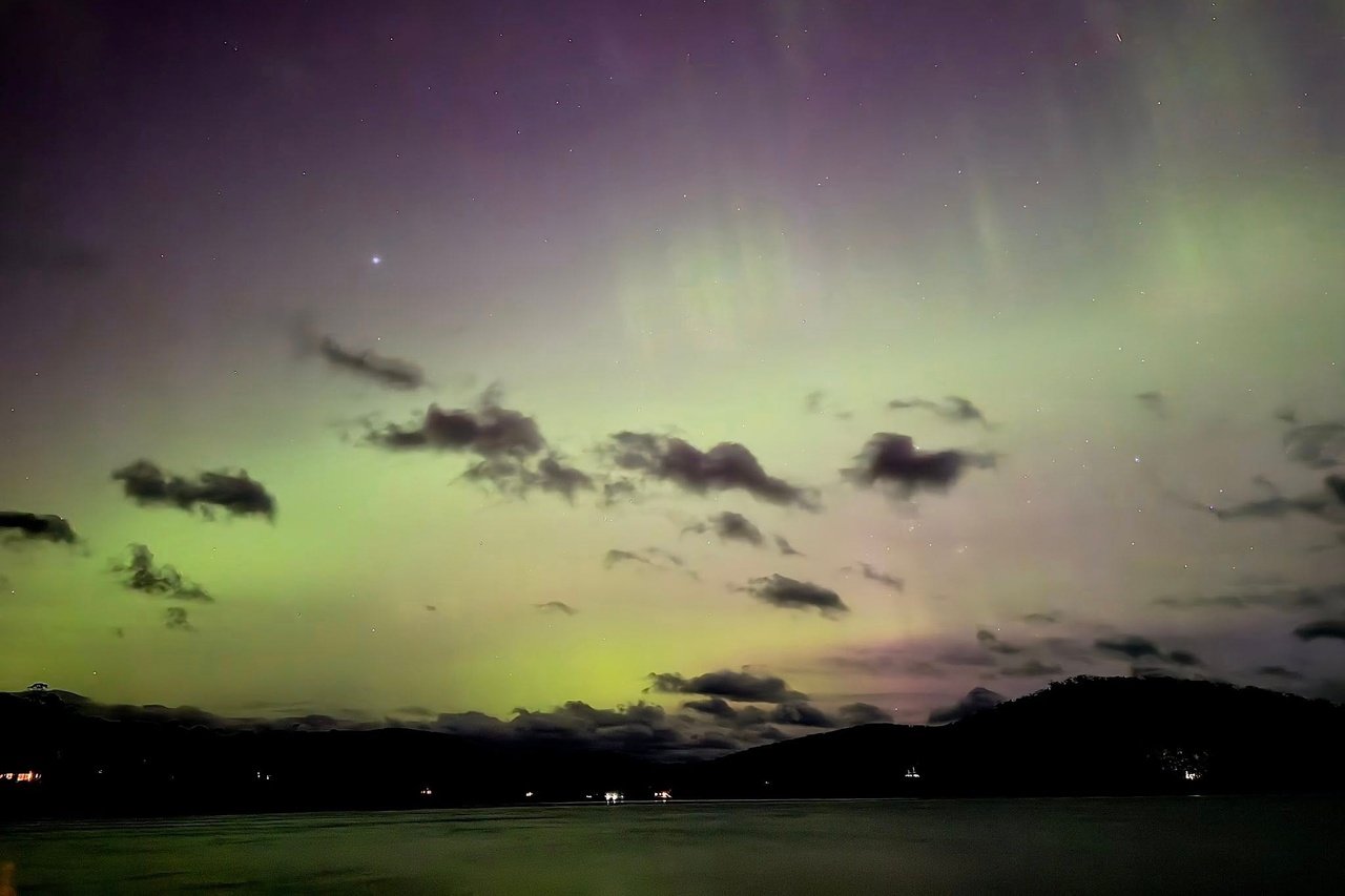 Spectacular displays of the southern lights were visible across Tasmania’s south and east coast overnight, despite challenging cloud conditions.