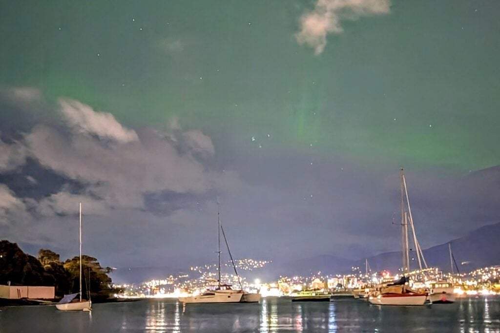 Spectacular displays of the southern lights were visible across Tasmania’s south and east coast overnight, despite challenging cloud conditions.