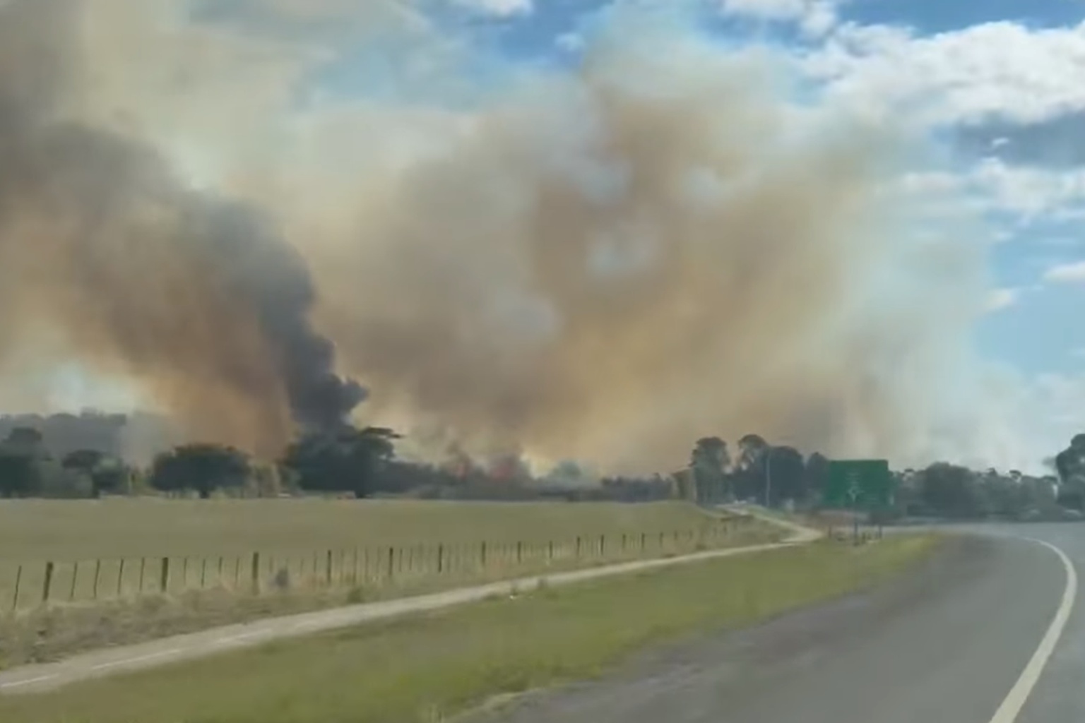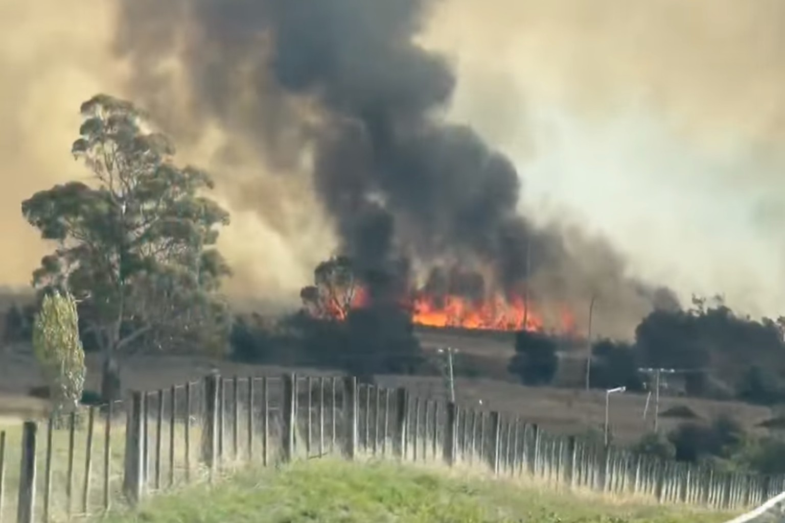 A bushfire is heading towards Breadalbane, south of Launceston, with heavy smoke cutting visibility on the Midland Highway.
