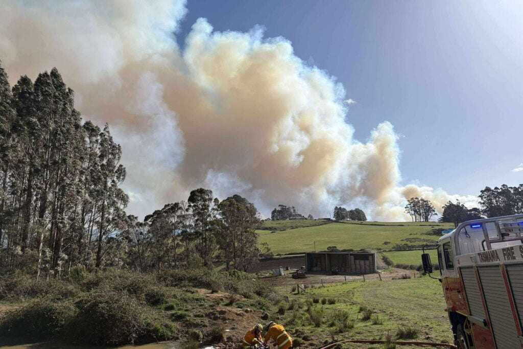 The fire has been visible from commercial aircraft, with images showing large plumes of smoke rising from the area east of Sorell.