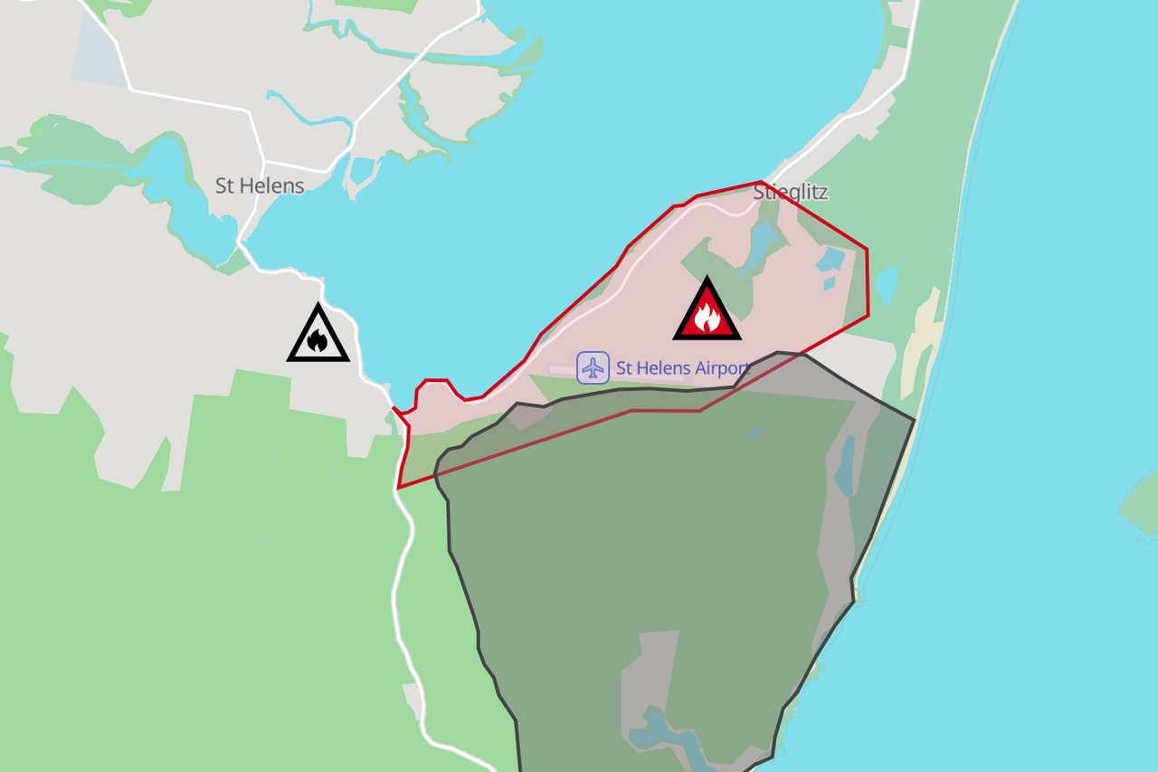 Updated 12am, Wednesday: The TFS says lives are in danger and homes may be destroyed in Stieglitz near St Helens, issuing an urgent warning to “leave now”.