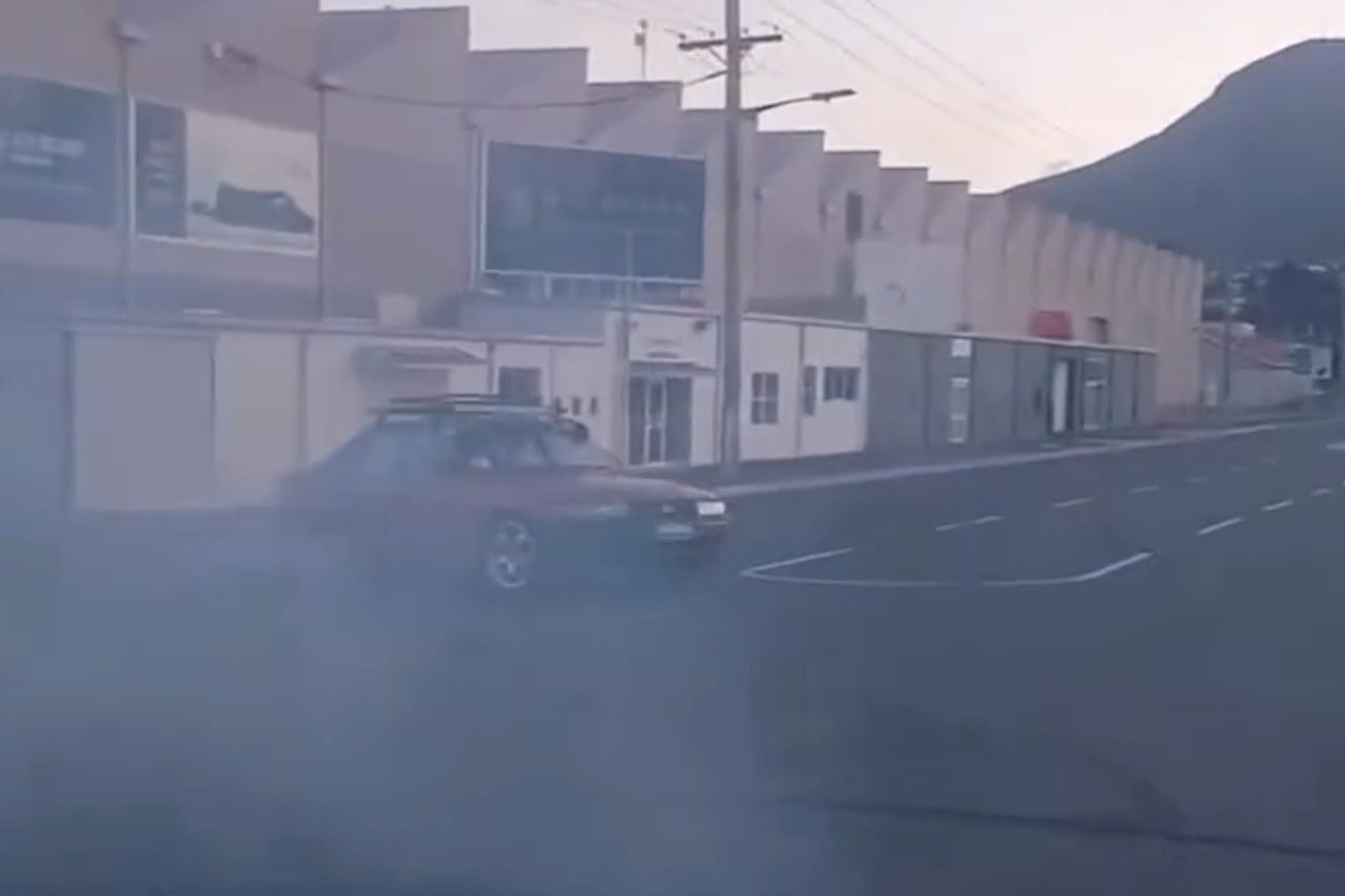 Footage shared on social media shows the vehicle’s tyres smoking as onlookers gathered to record.
