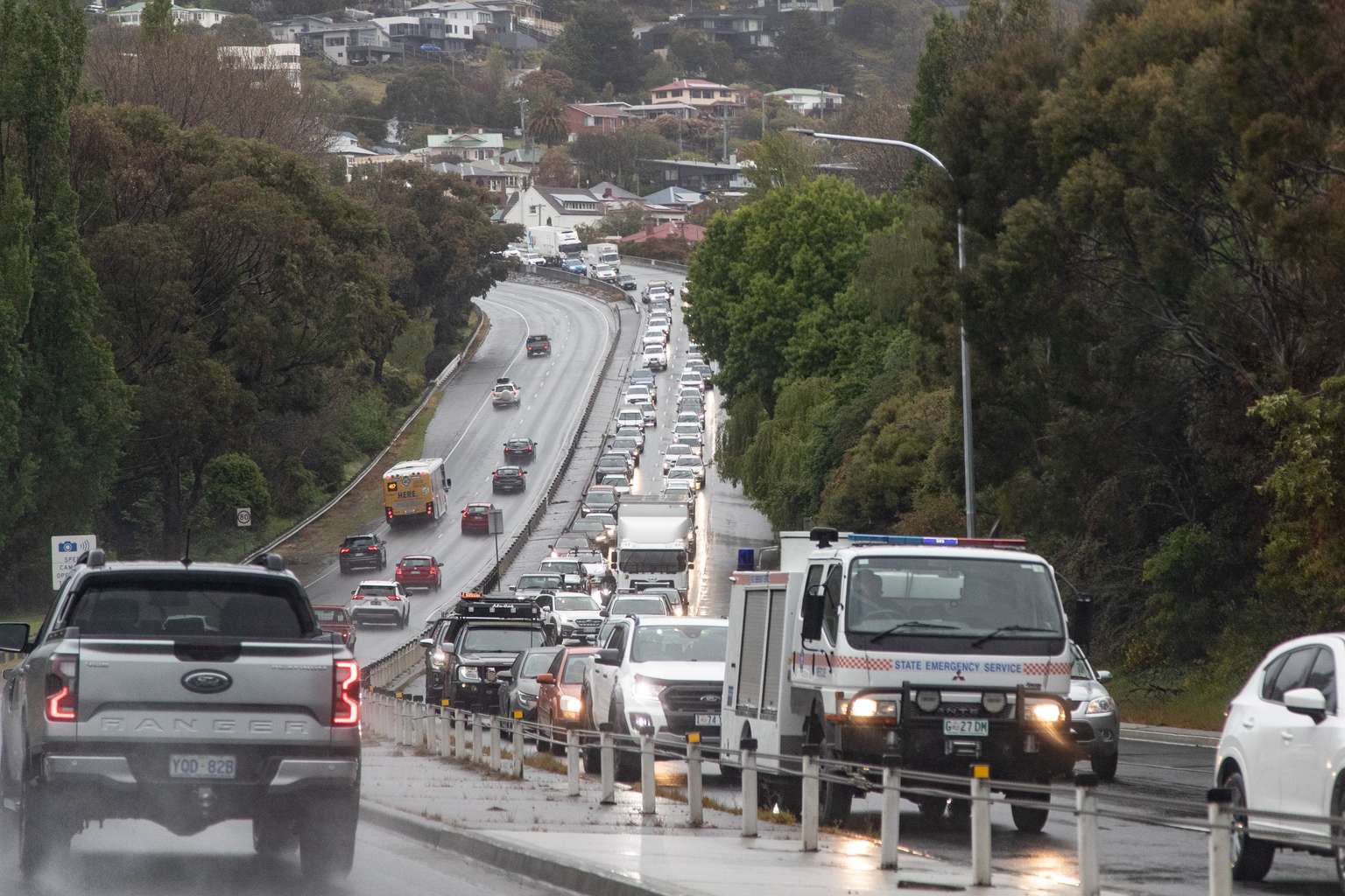 A car has flipped near Warrane before the Tasman Bridge this morning, causing major peak hour delays of up to an hour for commuters travelling from the Eastern Shore into Hobart’s CBD.