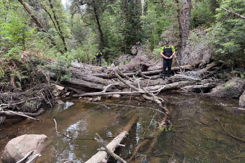 Crews were winched into a section of the Arthur River on Saturday, focusing downstream from where human remains and clothing were discovered on Friday.