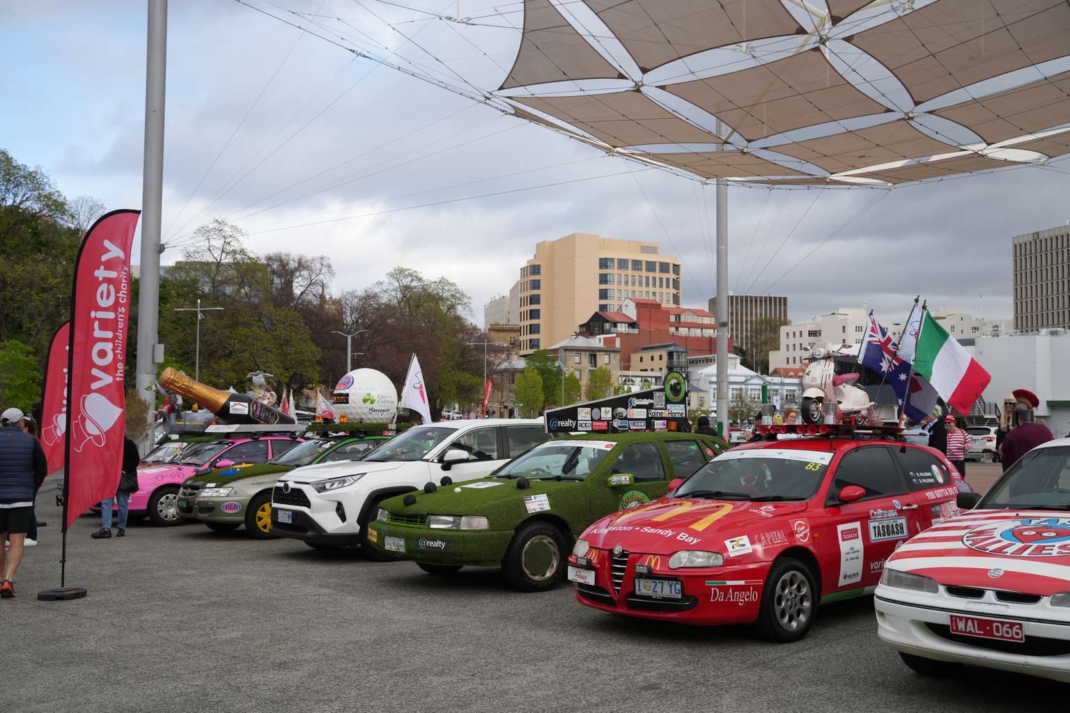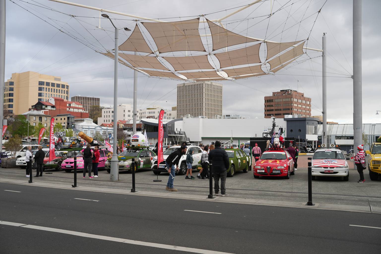 The colourful convoy of themed vehicles and costumed ‘Bashers’ departed Princes Wharf No.1 this morning, beginning a six-day journey from the Tasman Peninsula up the East Coast to Launceston.