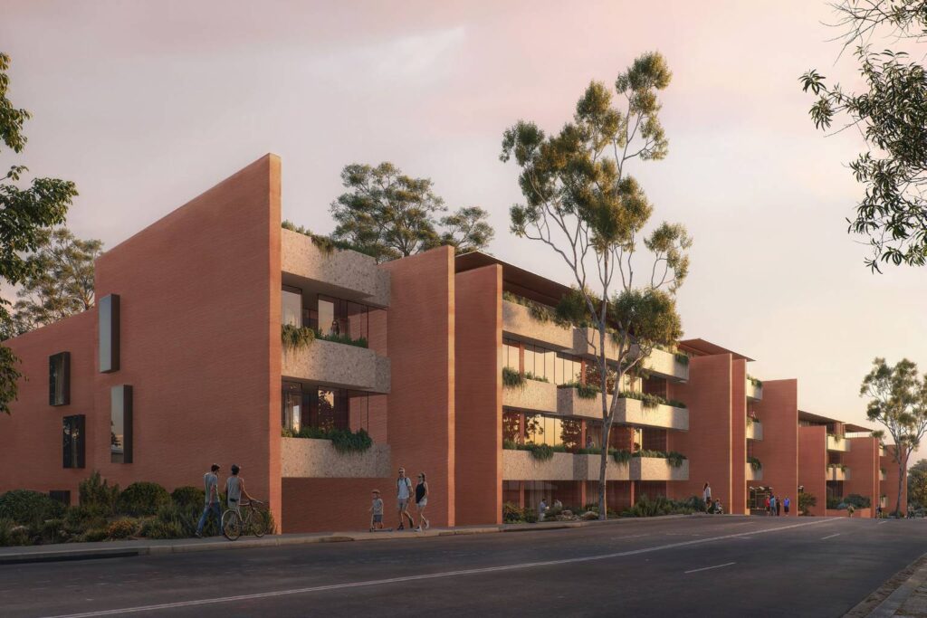 The development will feature six interconnected buildings with landscaped areas, including a village green and rooftop gardens.