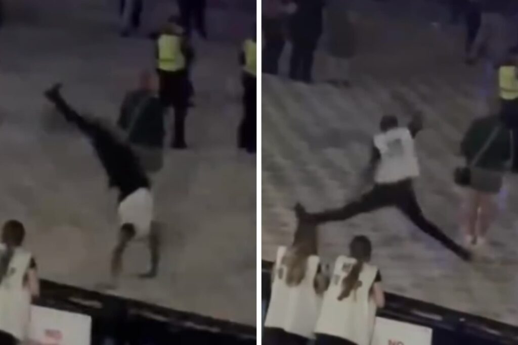 An event marshal has become an unlikely star of the Foo Fighters’ Australian-exclusive concert in Launceston, delighting concertgoers with impromptu dance moves that included flips and splits.