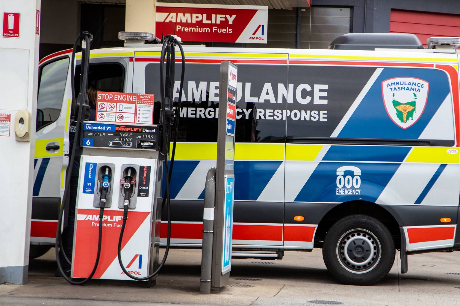Emergency services have been directed to 24-hour stations where their vehicles will be prioritised. These include Ampol locations at Brooker, Moonah, Cambridge and Claremont.