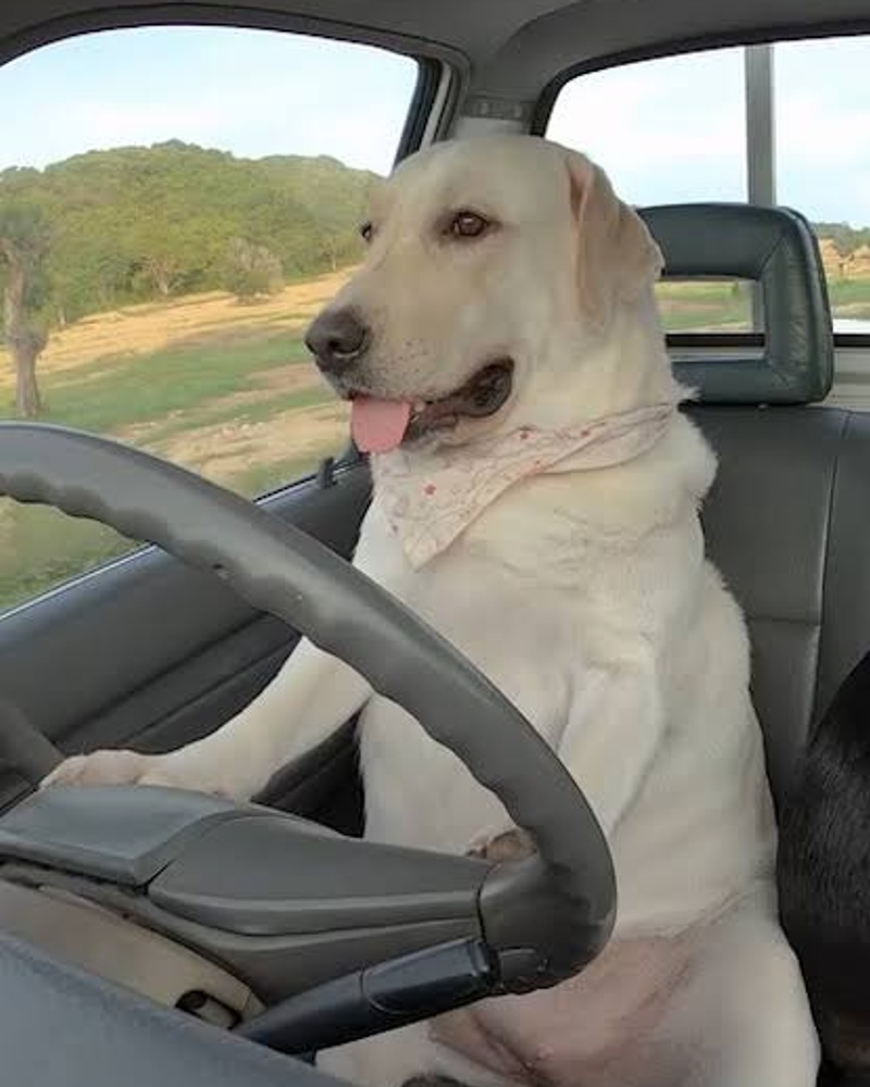 They observed that a dog appeared to be in the driver’s seat while a man sat in the passenger seat.