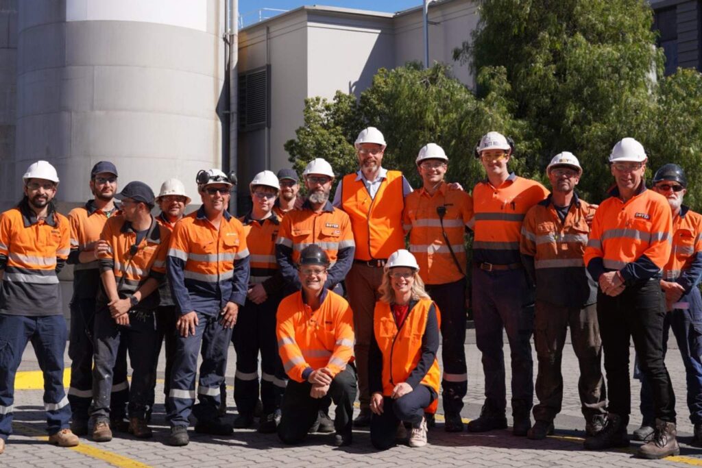 The pair met with health services and community groups before concluding with a workplace “toolbox talk” at Boyer Paper Mill.