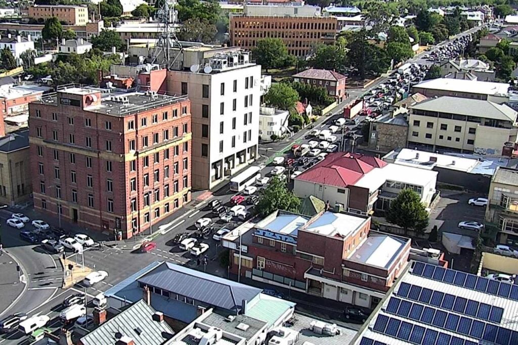 Traffic signals were damaged in the collision, forcing police to close three lanes on Davey Street and divert traffic via Sandy Bay Road.