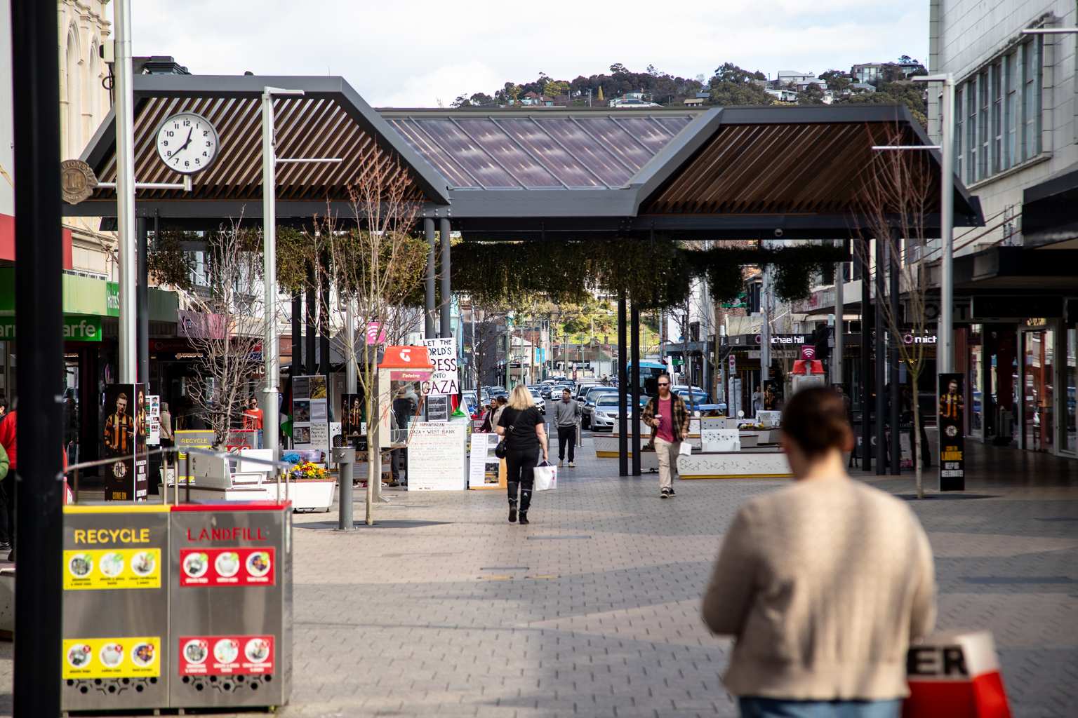 The board, which was unveiled at Launceston’s Cataract George yesterday, shows a picture of Brisbane’s Queen Street Mall in Queensland instead of Launceston’s iconic Brisbane Street Mall.