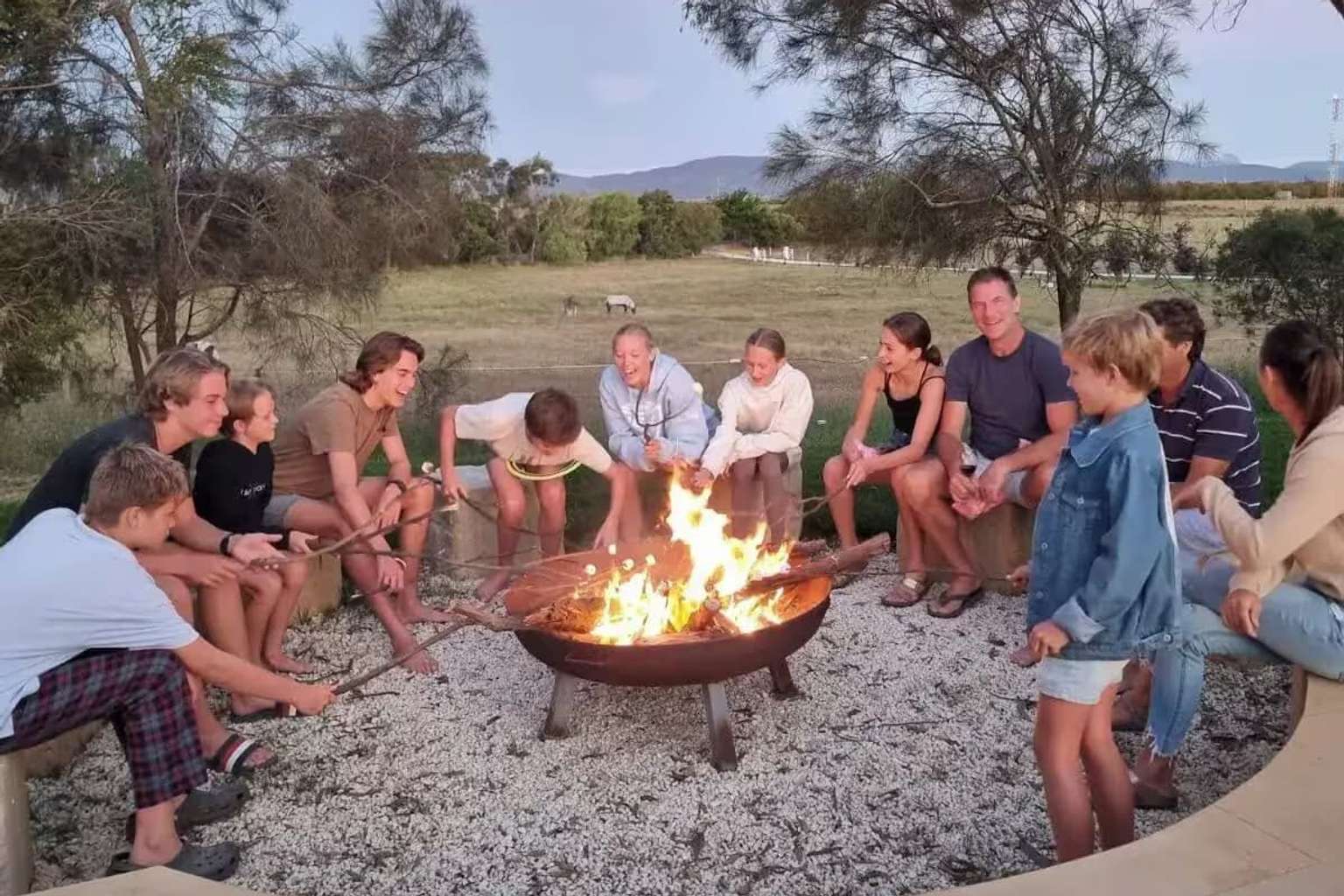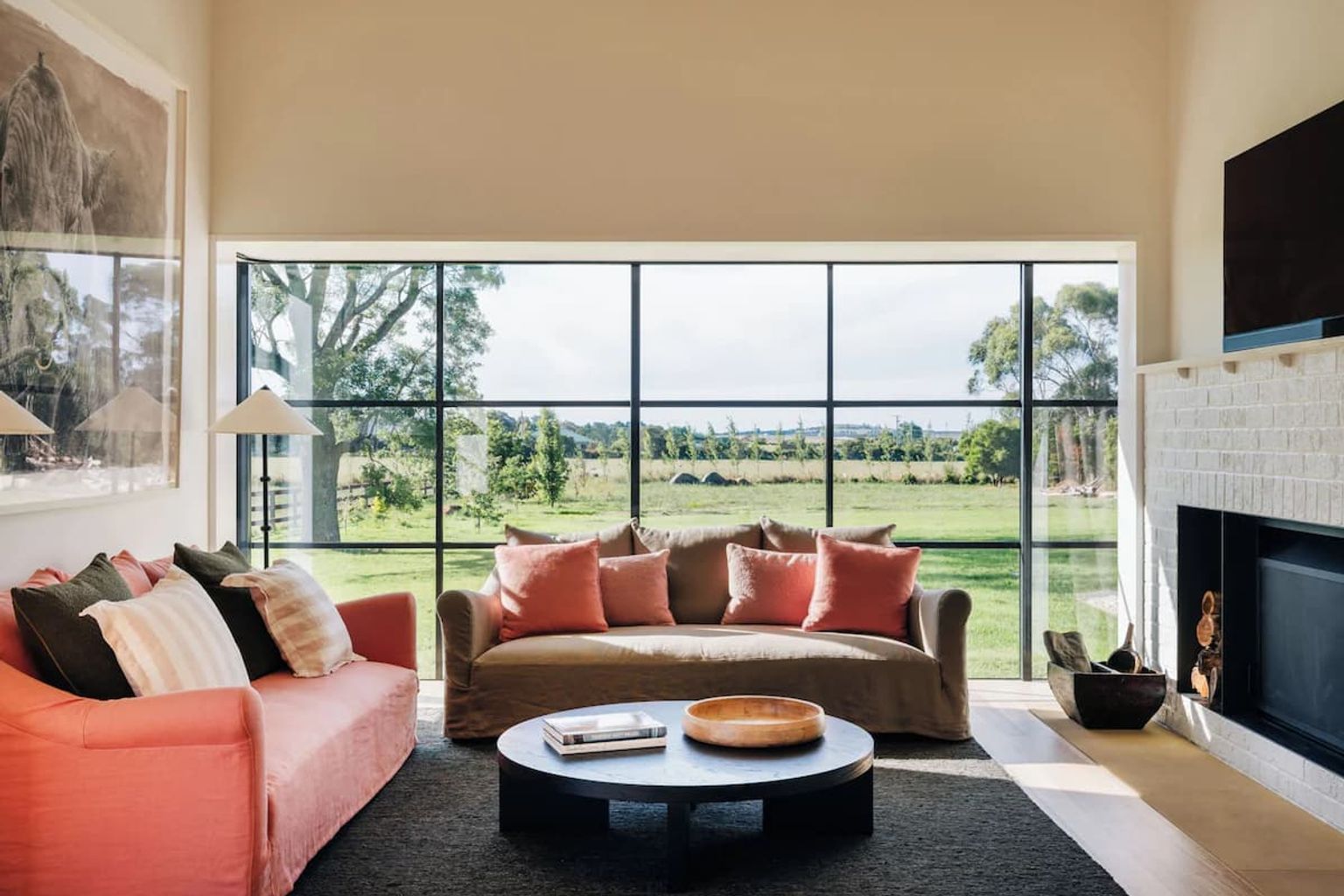 A modern architectural wing has been added to the original home, featuring a bunk room with three double bunks, soaring ceilings, a 12-seat dining table, a chic kitchen and an inviting fireplace.