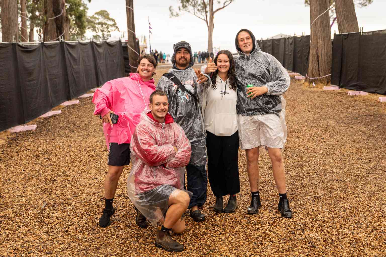 Free ponchos have been handed out at information booths and entry gates, with campers making the most of the soggy conditions.