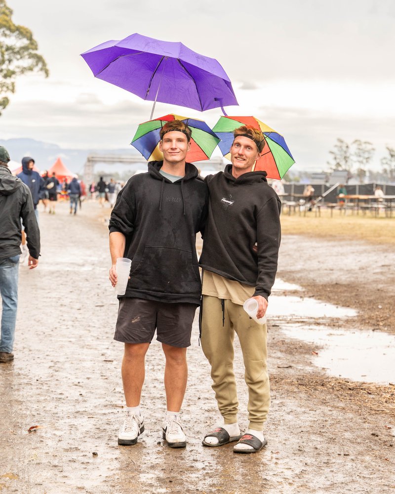 Up to 6mm of rain fell in the four hours after 9am Sunday, but the 14,000-strong crowd kept the party going ahead of tonight’s headline acts The Veronicas and Sophie Ellis-Bextor.