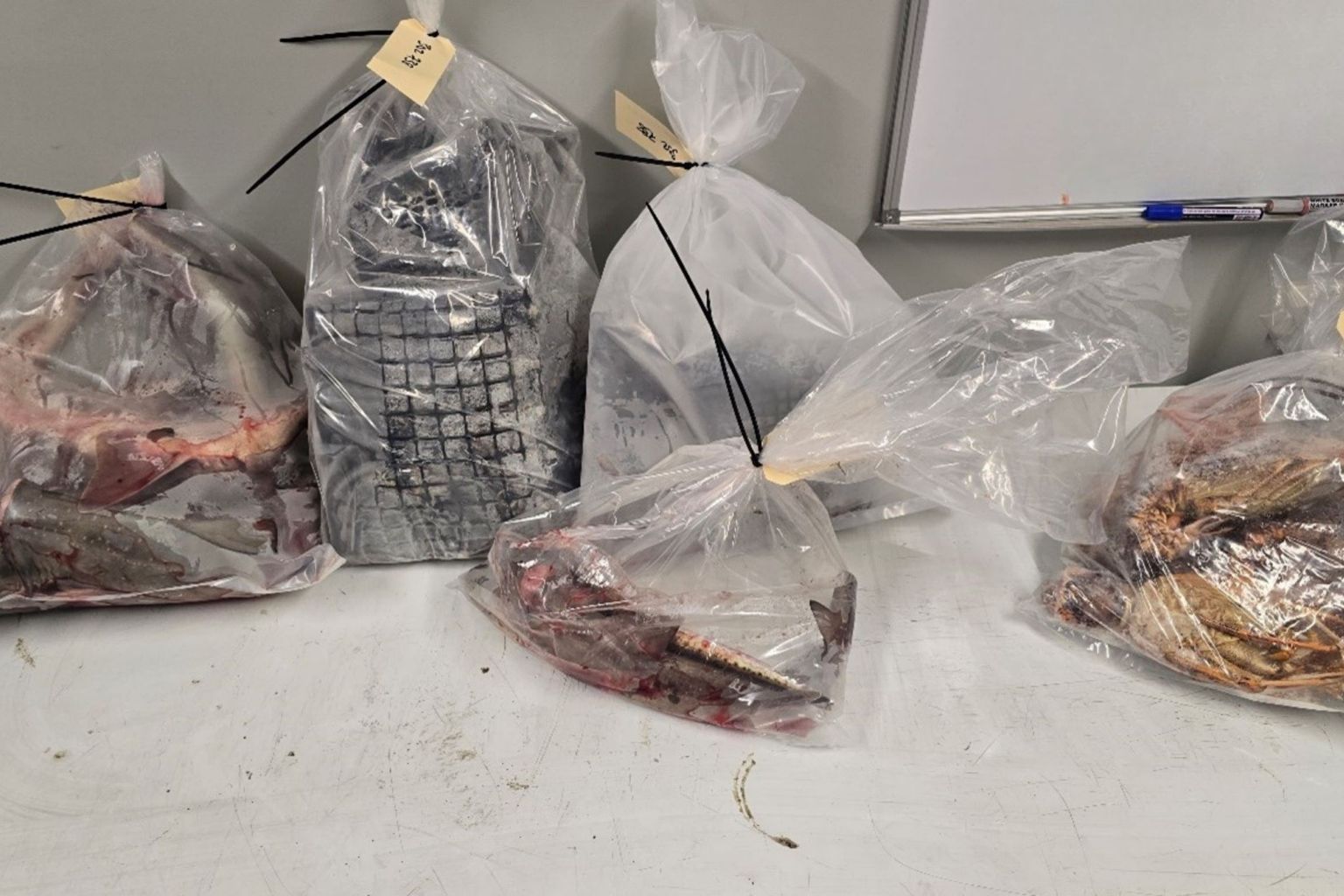 Four people fishing at Gordon had their boat and equipment seized after allegedly being caught with unmarked lobster pots, undersize fish and sharks taken from a protected area. They were fined more than $10,000.
