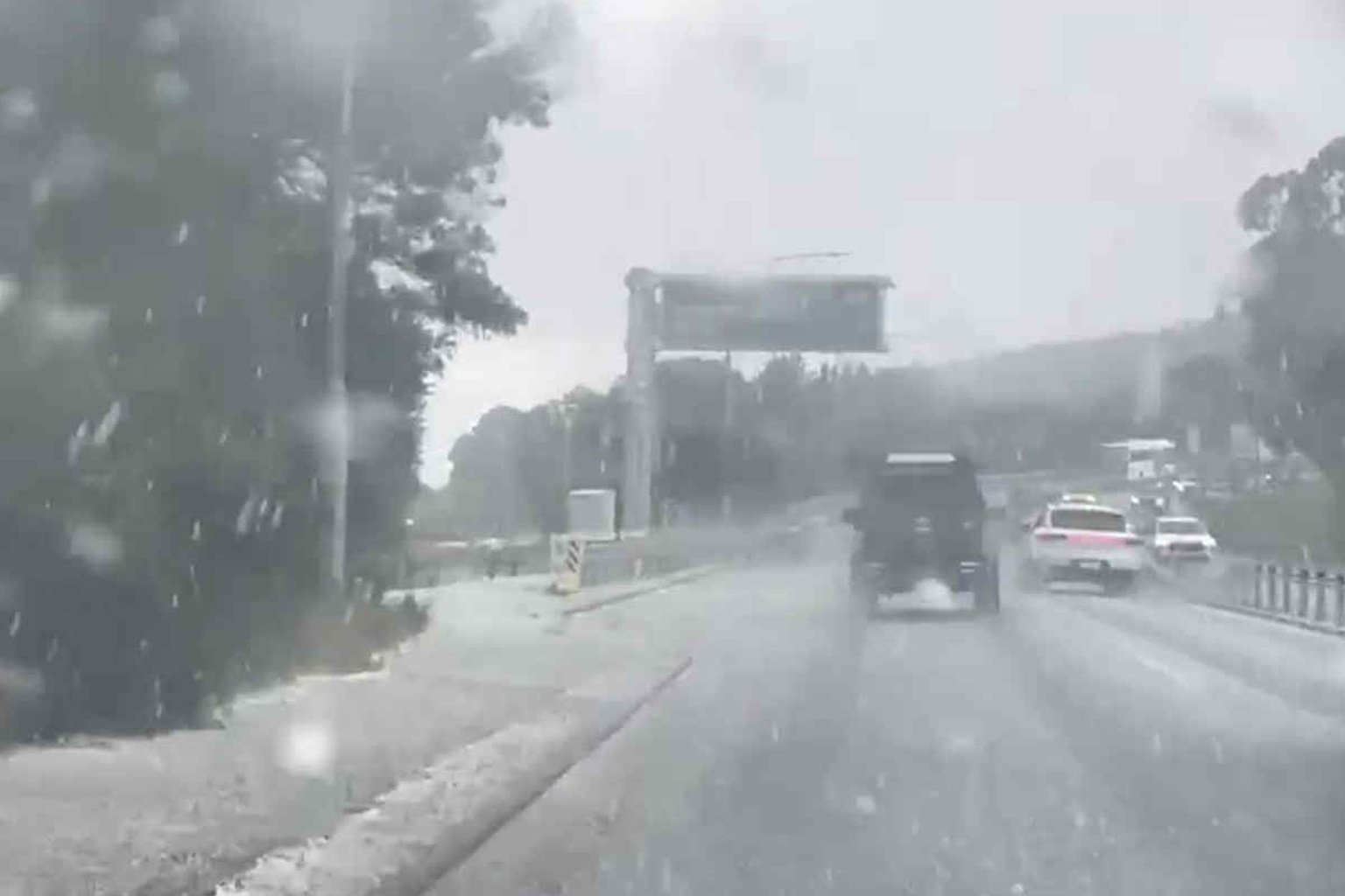 Parts of Hobart have been struck by a sudden hailstorm this afternoon, with the Brooker Highway briefly transformed into an icy scene.
