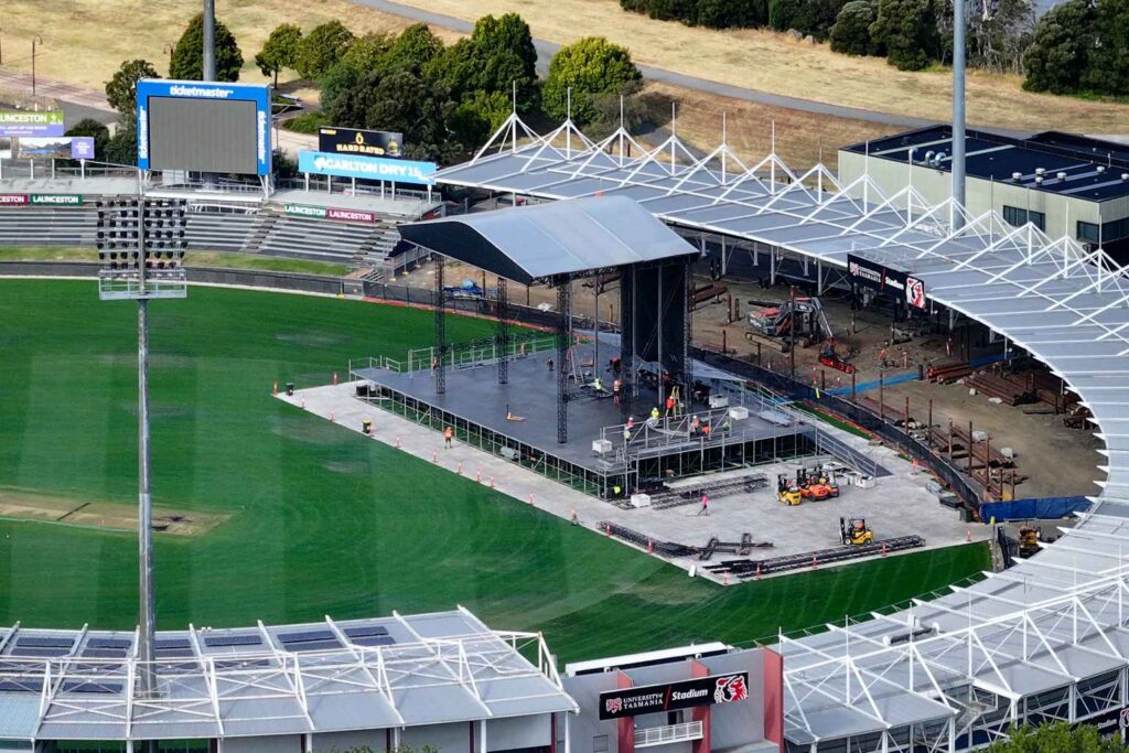 Tasmania is bracing for its biggest ever concert as final preparations get underway at Launceston’s UTAS Stadium ahead of the Foo Fighters’ sold-out show on Saturday night.