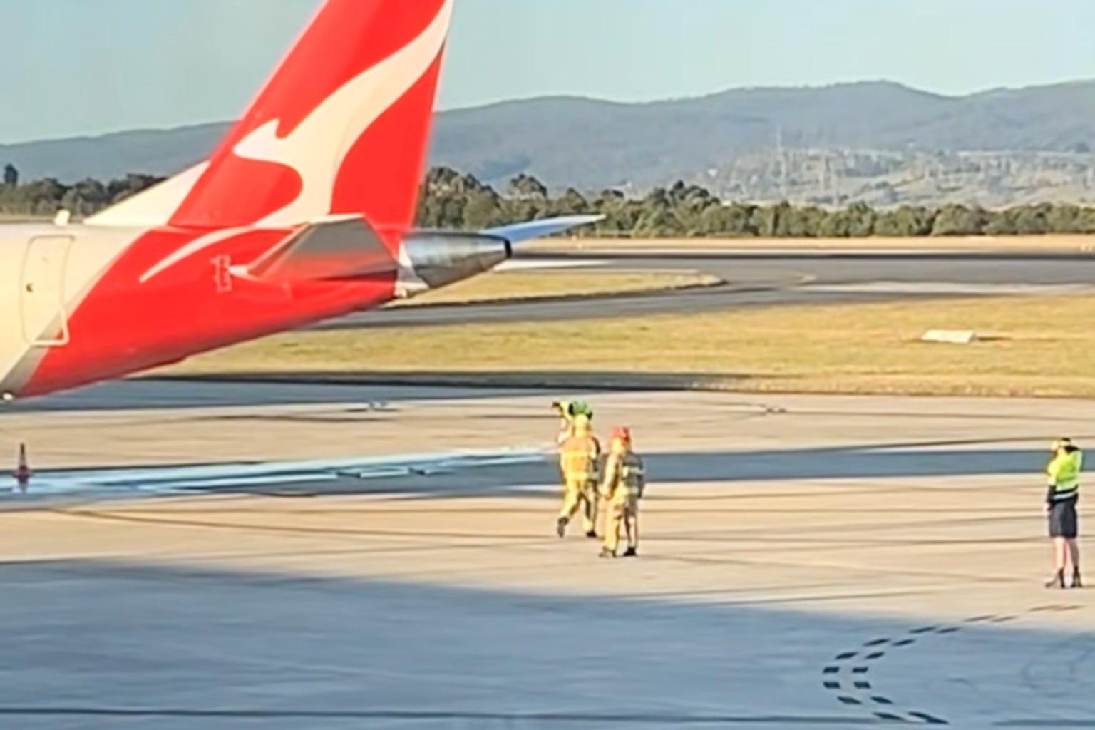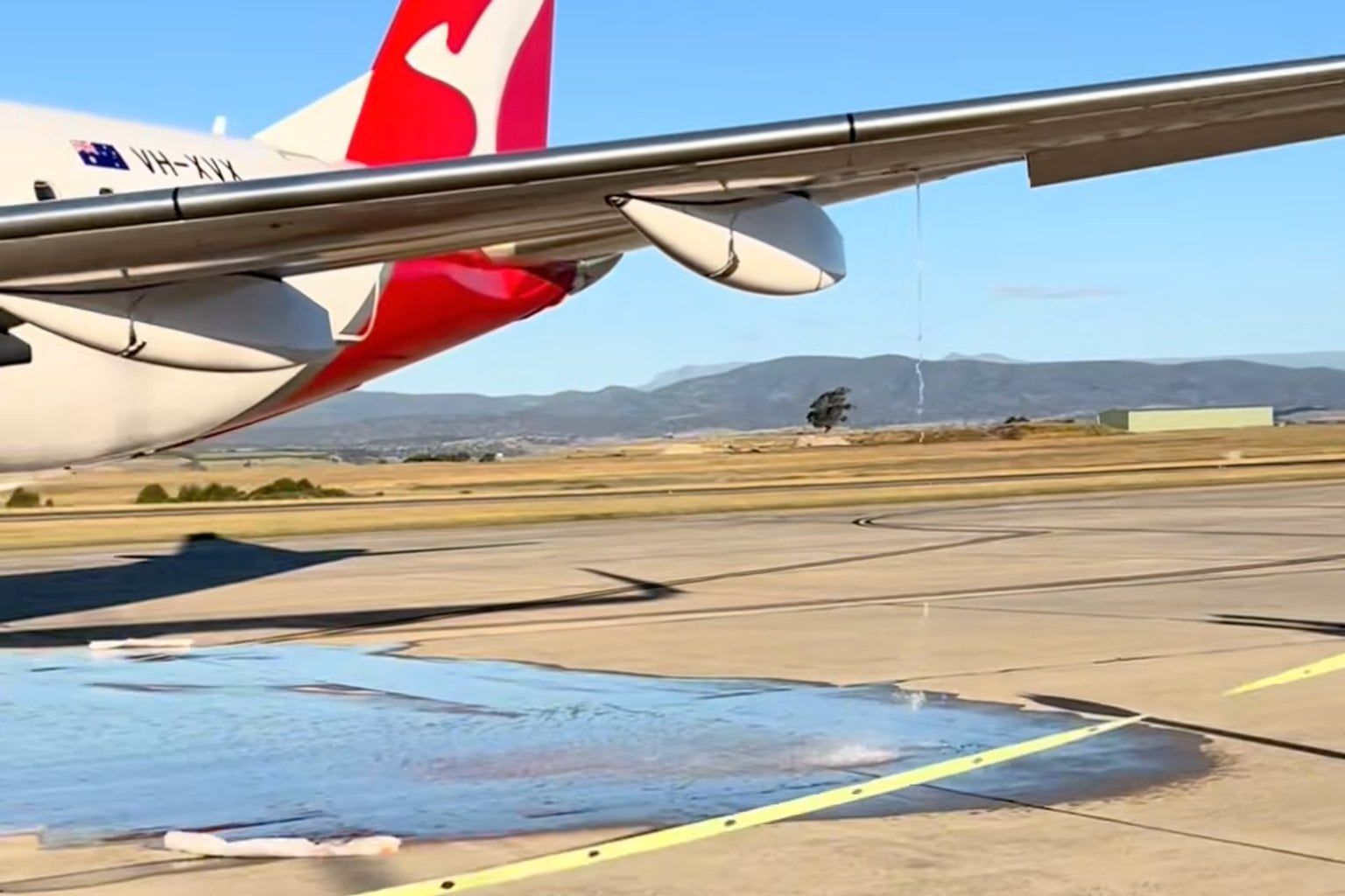 Video footage captured at the scene showed fuel pouring onto the tarmac beneath the stationary aircraft.