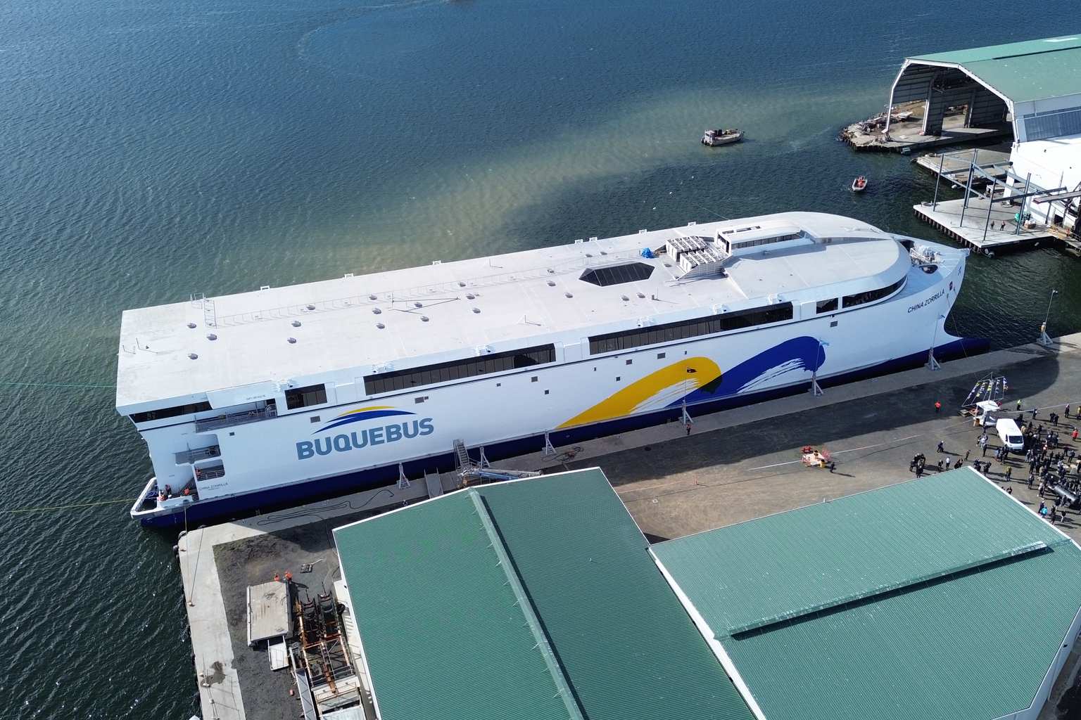 When operational, the ship will carry up to 2,100 passengers and 225 vehicles for operator Buquebus.