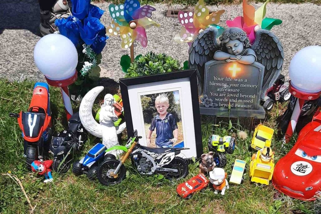 “I’m hoping someone will have a heart and return my four-year-old son’s lights to his grave,” Barrett wrote, noting her family is “still grieving” after losing their son in June.