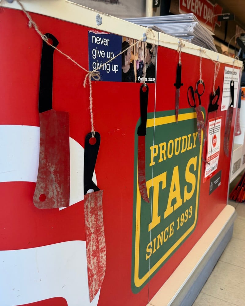 The display, which showed imitation bloodied knives hanging from a counter at the store’s entrance, was taken down within an hour of Pulse bringing shoppers’ concerns to the supermarket group.