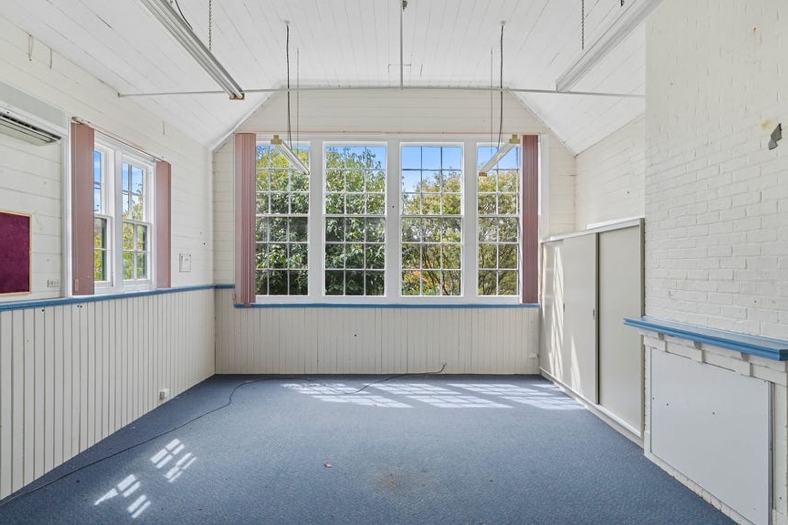 A second building was added later with extra classrooms and office space and the grounds include a school oval framed by poplar trees.