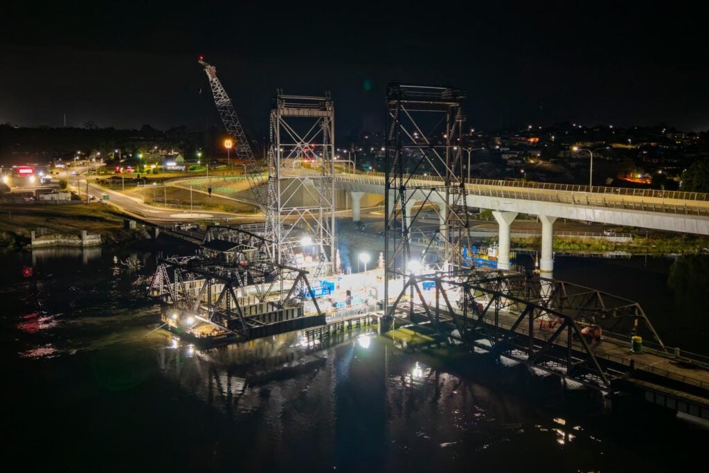 The iconic lifting span of the old Bridgewater Bridge was successfully removed overnight, floating away on a barge in a carefully timed operation.
