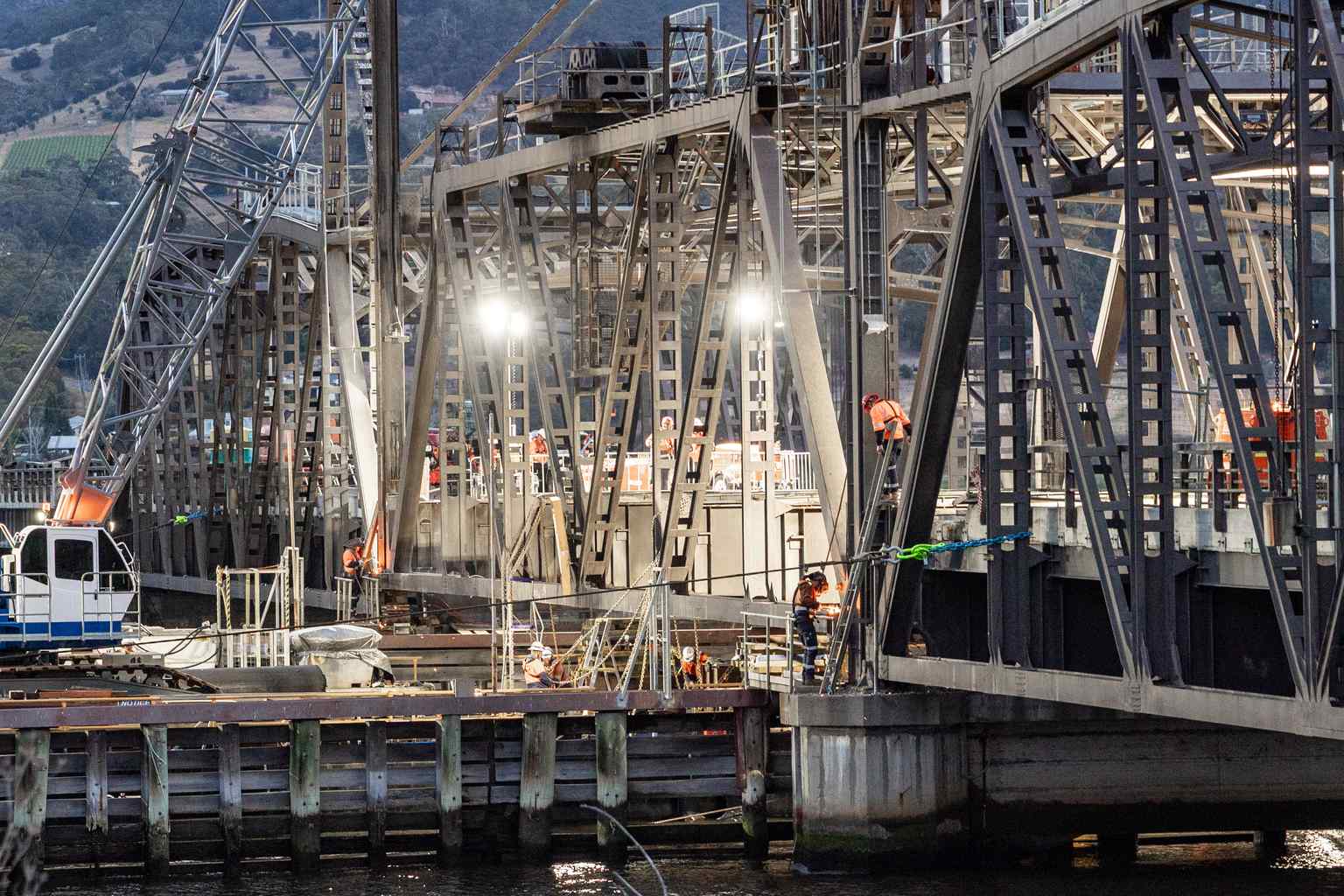 “Overnight they were successful in moving a crane on a barge through to sit underneath the lifting span of the old bridge,” Burke told Local Radio.