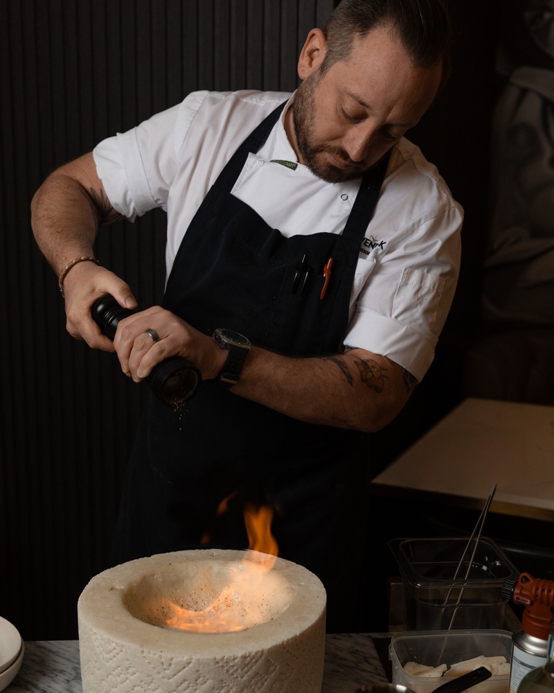 Mövenpick Hotel Hobart’s Tesoro restaurant introduced the cacio e pepe ritual yesterday, offering diners the opportunity to watch chefs finish house-made linguini inside a 25-kilogram wheel of Pecorino Romano.