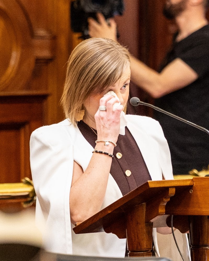 Thomas fought back tears while addressing the Legislative Council this afternoon, apologising to constituents who opposed her decision.