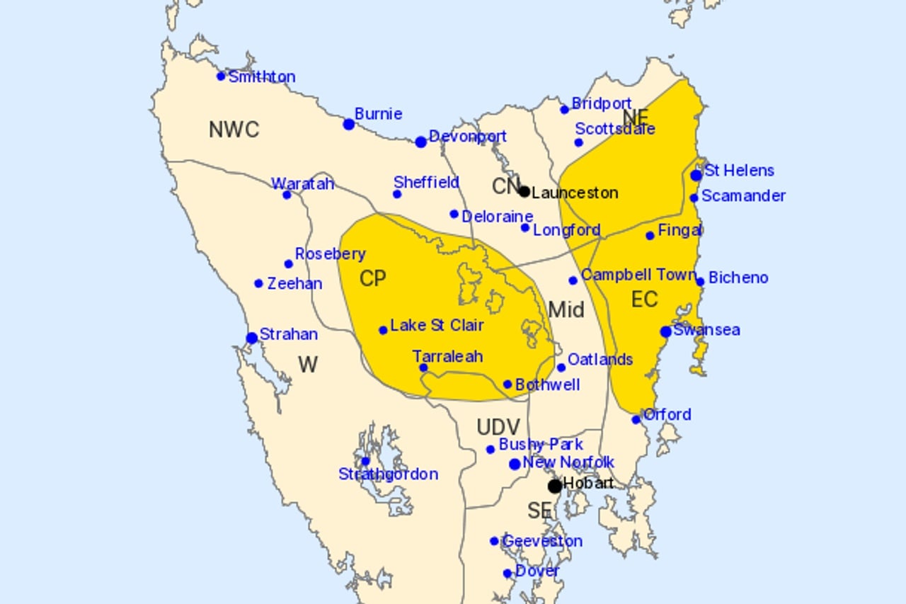 St Helens, Swansea, Bicheno, Bothwell, Fingal and Tarraleah are among the areas that may be affected.