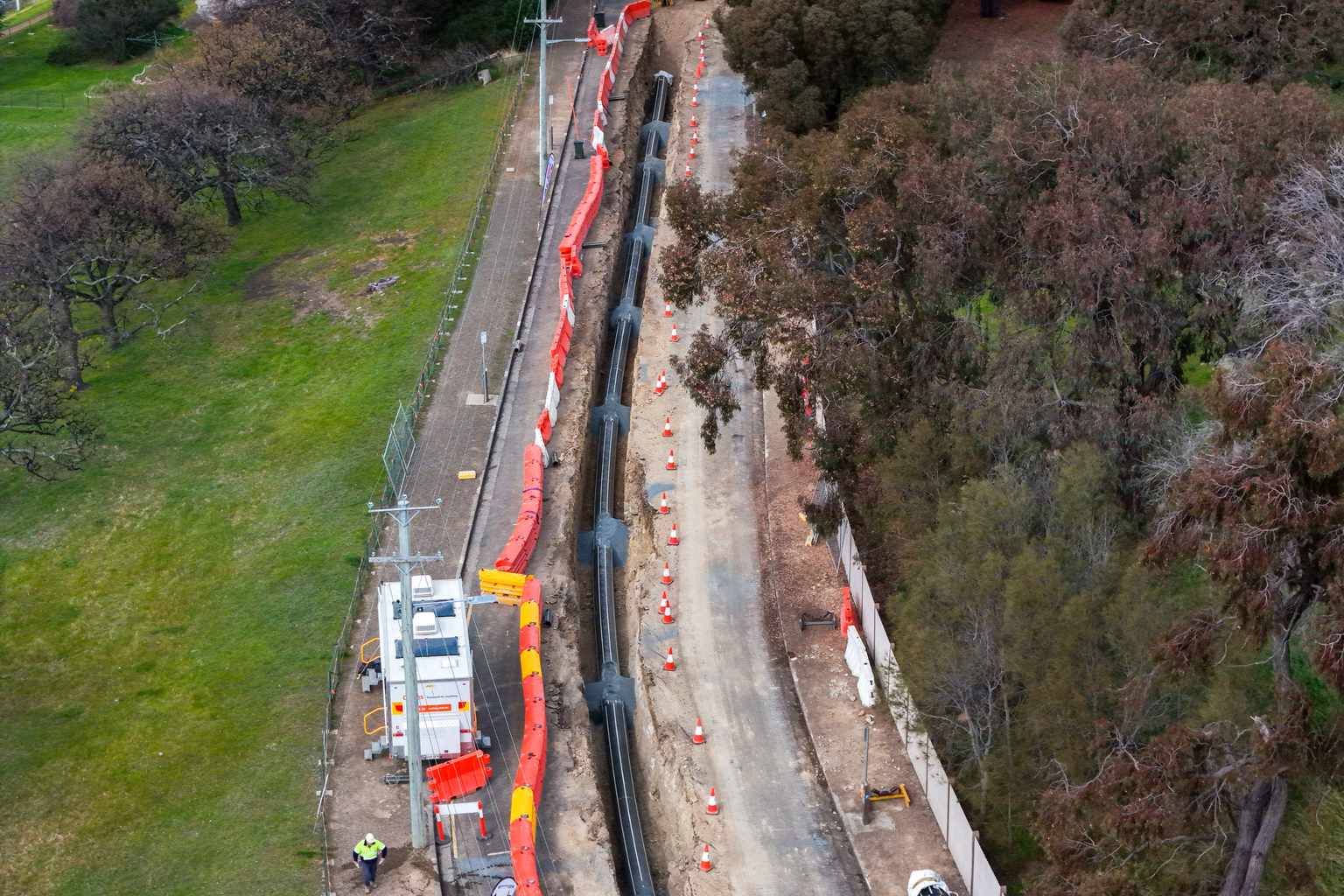Workers have completed 2.8 kilometres of a 4.3-kilometre pipeline and removed 10,000 cubic metres of soil at Macquarie Point.