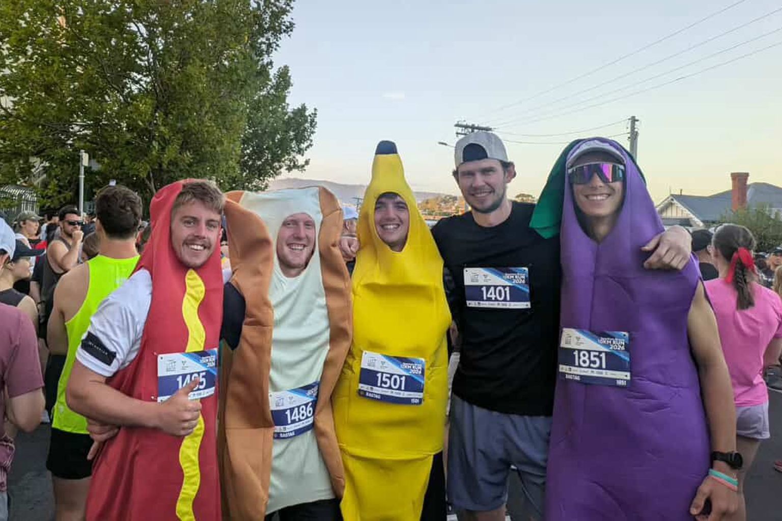 Colourful costumes dotted the active wear brigade, including a group of mates dressed as different foods.