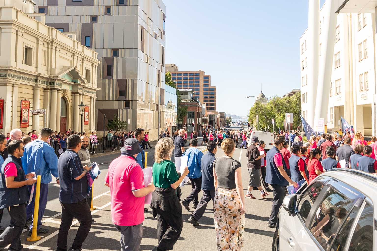 Hundreds of Royal Hobart Hospital workers walked off the job today in an escalating pay dispute with the state government.