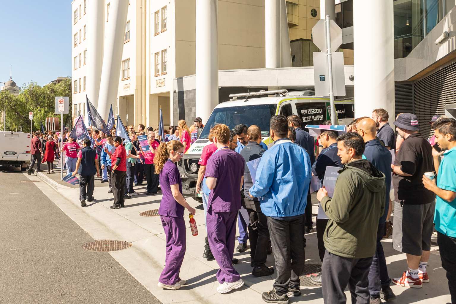 Allied health professionals, cleaners, food service staff and administrators at the hospital stopped work for one hour, with union leaders threatening extended strikes of up to 24 hours.
