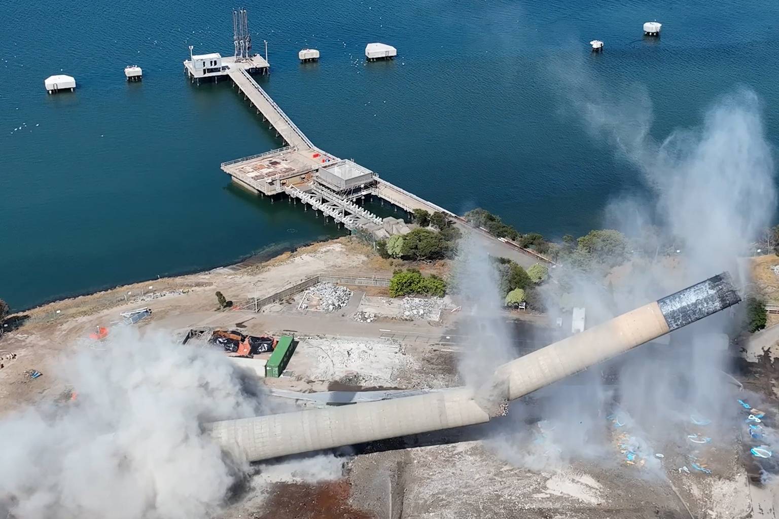 The 110-metre chimney stack at Tasmania’s former Bell Bay Power Station has been brought down in a controlled blast.