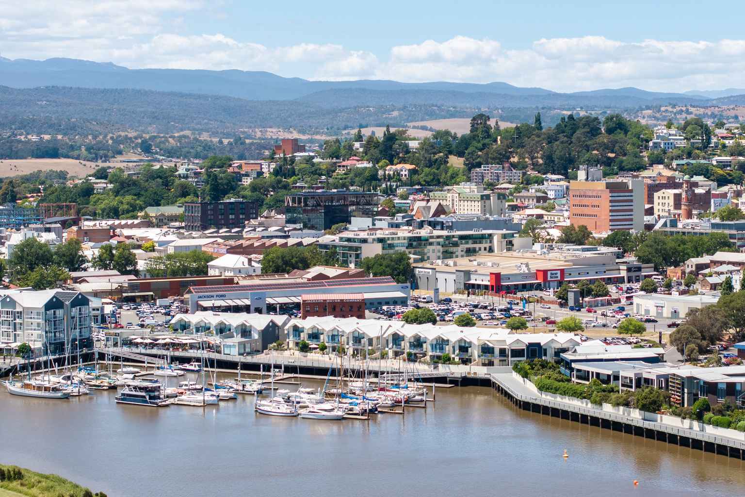 The spot sits where the Kanamaluka/Tamar Estuary meets the North Esk River and is home to a marina, boardwalk and eateries.
